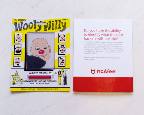 Our team created multiple direct mailer pieces tailored towards each type of recipient: new, current, and past customers. For new accounts Sublime Communications sent mailers, foot-in-door brochures, and spinners showcasing everything McAfee does to successfully protect businesses. Through classic games like Jenga and Wooly Willy, our branding campaign's messaging was focused on cloud protection, MVISION, and the pillars that continue to make McAfee a leading cybersecurity option. Lastly, to reopen relationships with past accounts, messaging and products were designed to show how together with McAfee organizations can remain connected and secure.